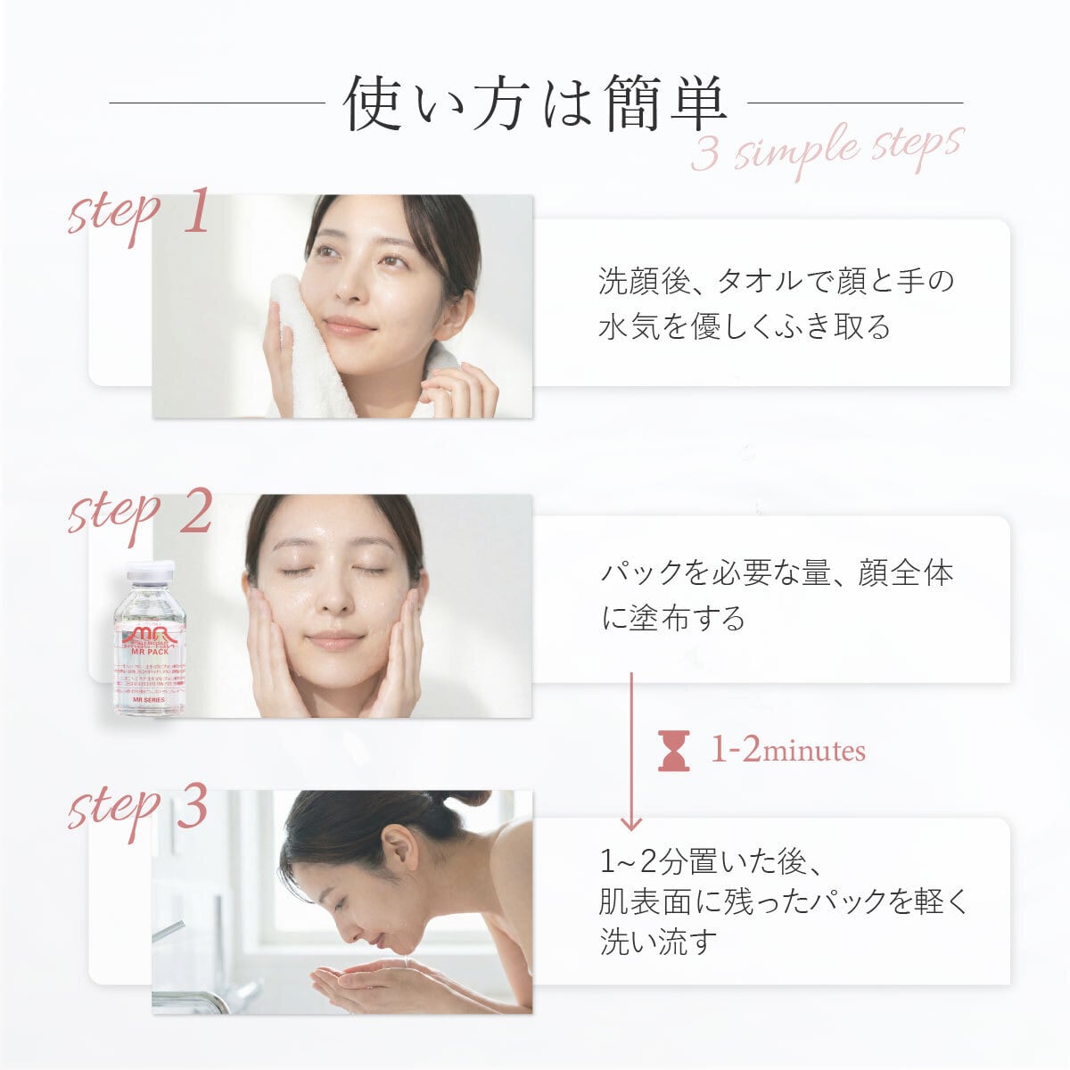 パックを肌にのせる(1〜2分)